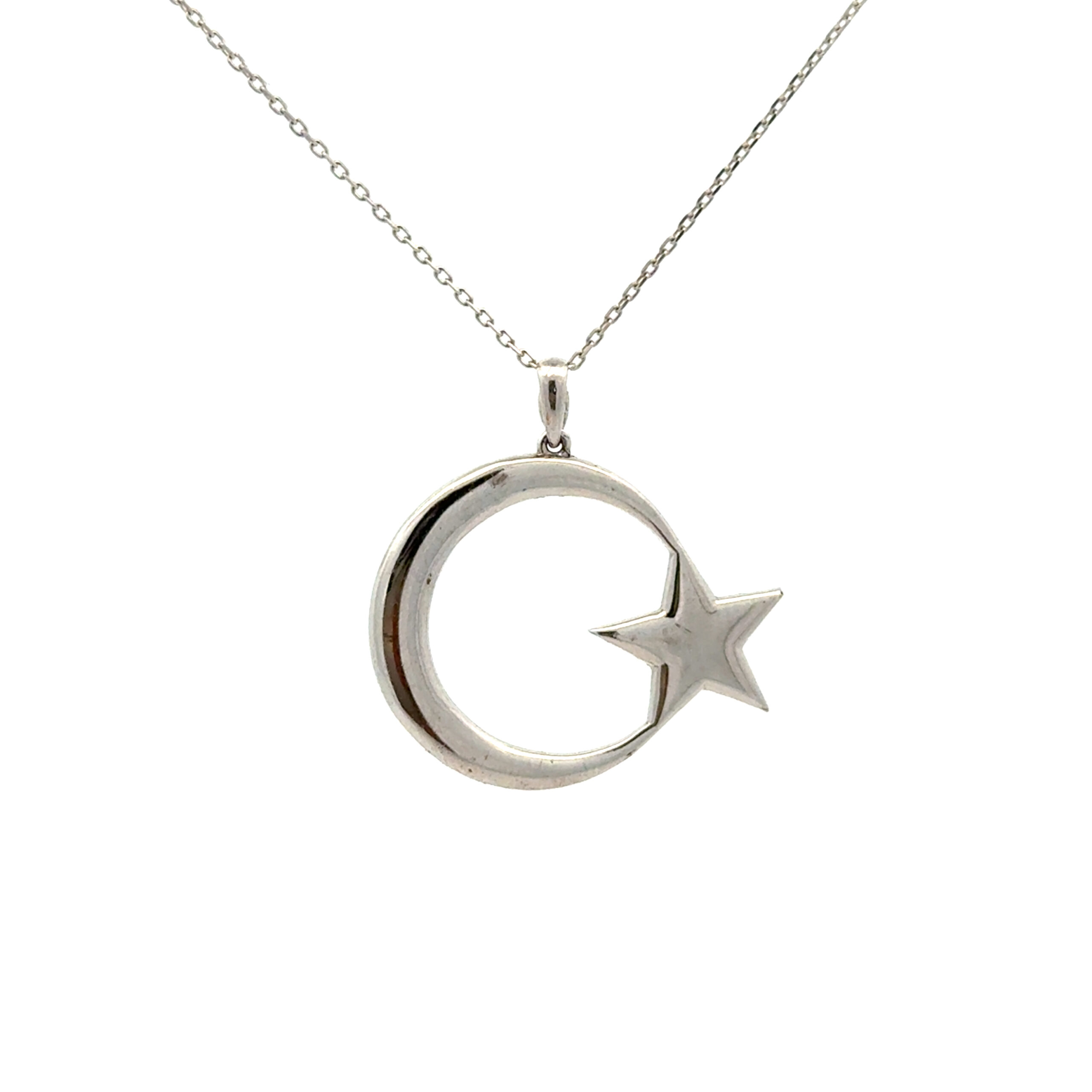 Ay Yıldız 14 Ayar Beyaz Altın Kolye
