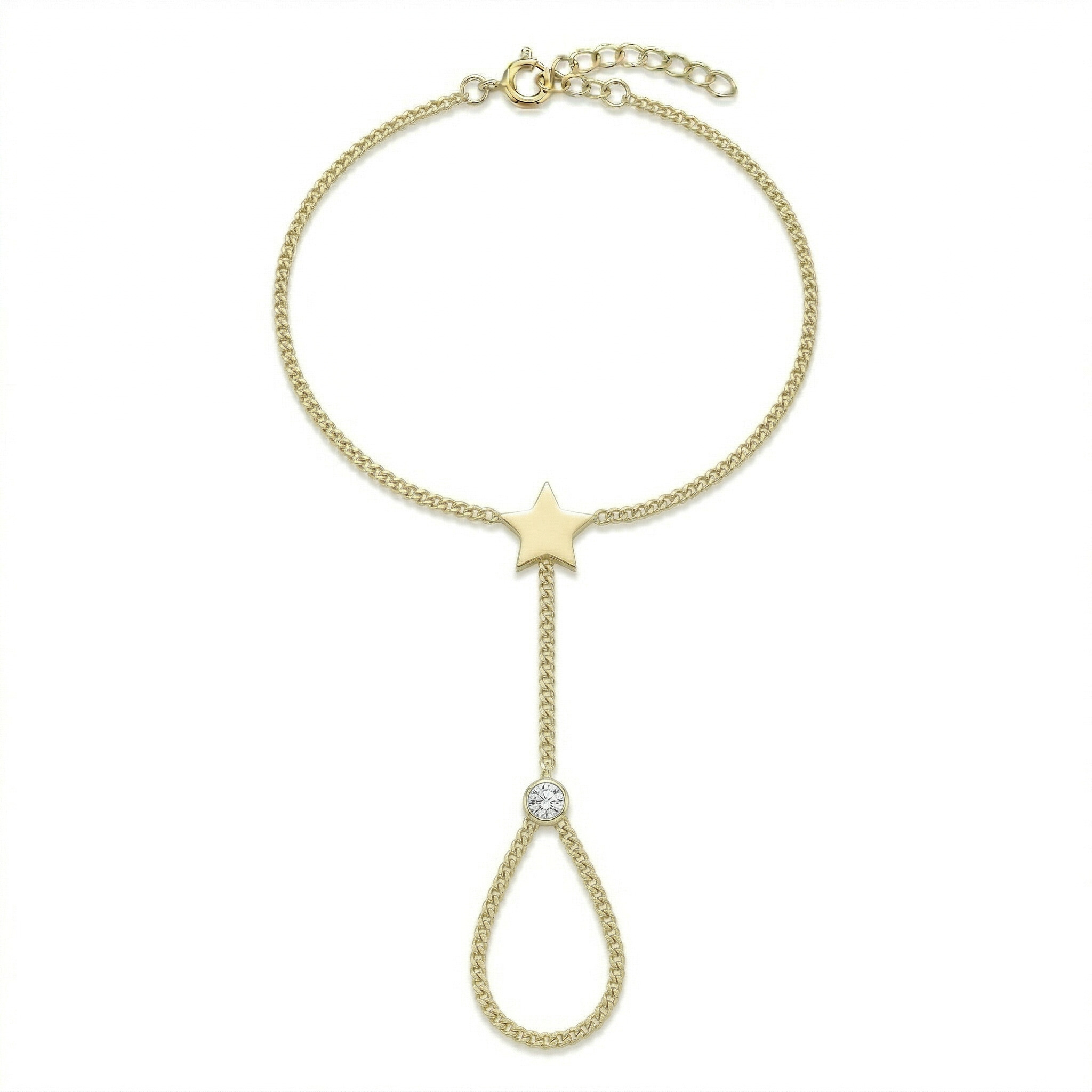 Tasarım: Minimalist estetiğin ön planda olduğu bu tasarımda, net hatlara sahip düz bir yıldız motifi odak noktasıdır. Yıldızdan parmağa doğru düz bir çizgi halinde uzanan ince altın zincir, ucundaki tektaş zarafetiyle son bularak parmak döngüsüne bağlanır. Altının yalın gücü ile o incecik taşın narin parıltısı, şahmeran üzerinde kusursuz bir denge oluşturur.