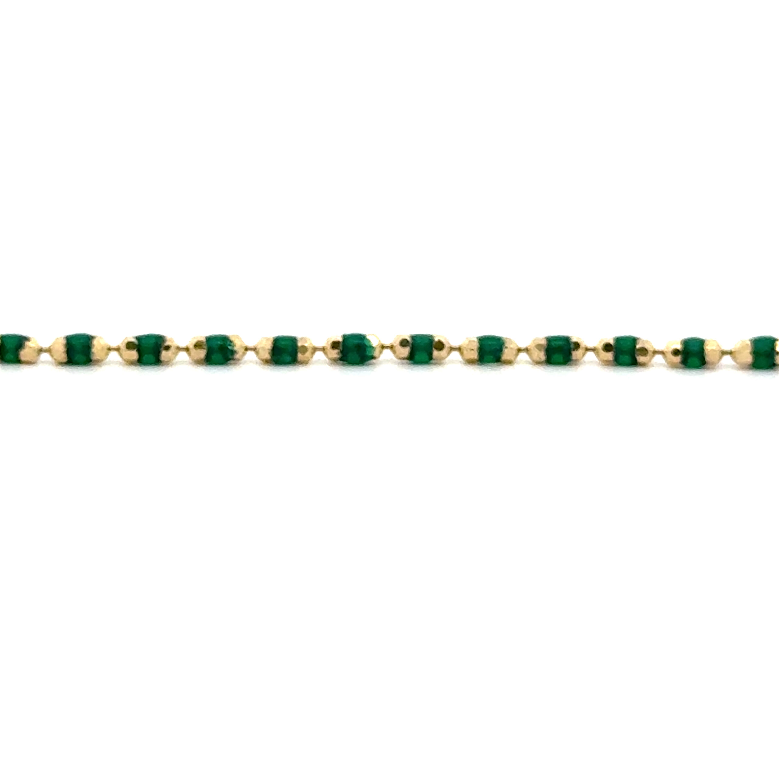 Zarif ve Çarpıcı Tasarım: Mine detayları ile bezenmiş bu 14 ayar altın bileklik, zarafeti ve modern dokunuşu bir araya getirir. Canlı renk tonları ile altının sıcak ışıltısı mükemmel bir uyum yakalar, her anınıza sofistike bir şıklık katar.