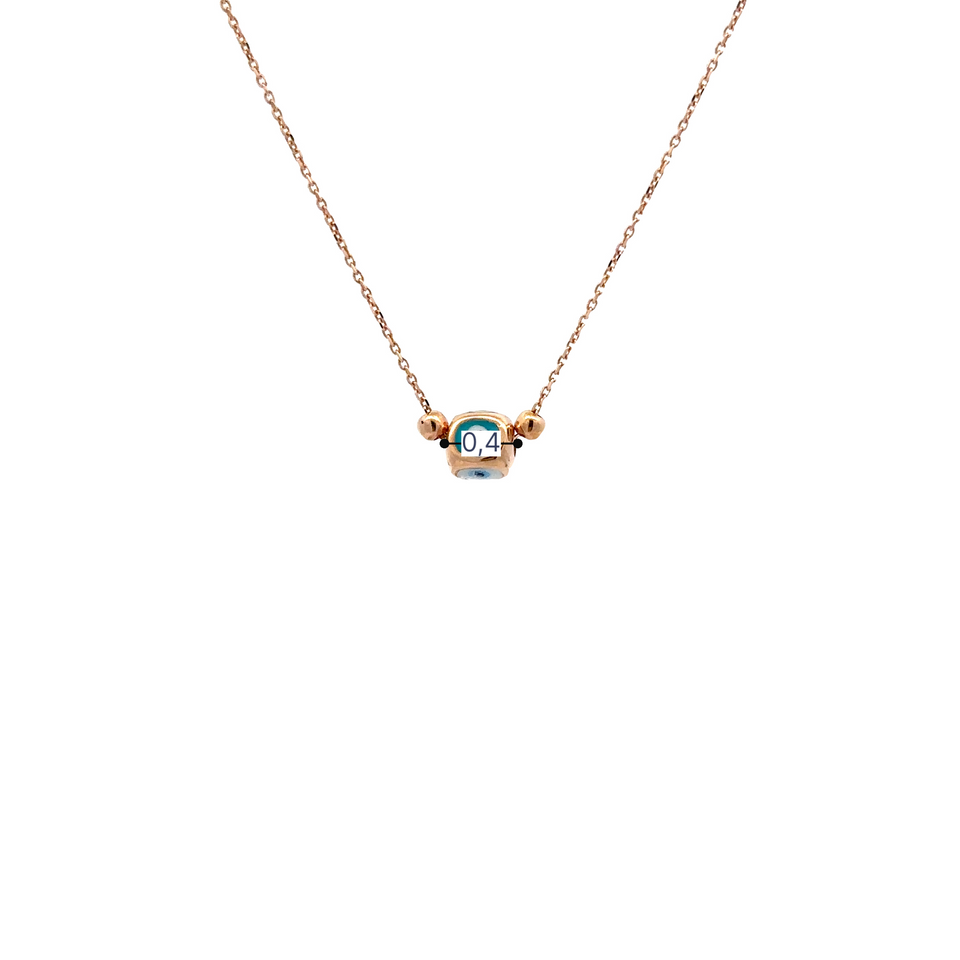 Şık ve Zarif Tasarım: Küp şeklindeki nazar boncuğu detaylarıyla öne çıkan bu kolye, hem modern hem de geleneksel bir dokunuş sunar. Rose altının zarif rengi, tasarımın şıklığını artırır.